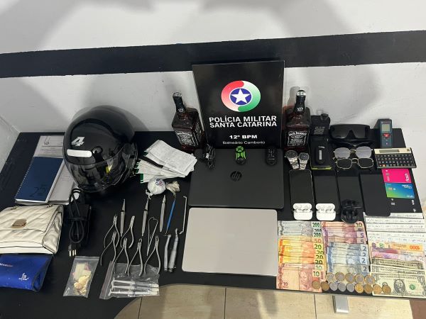 Em diligência no hotel onde os suspeitos estavam hospedados, foram recuperados notebook, materiais odontológicos, bolsa e itens pessoais furtados. Um dos envolvidos apresentou nome falso, sendo constatado posteriormente que havia mandado de prisão ativo.