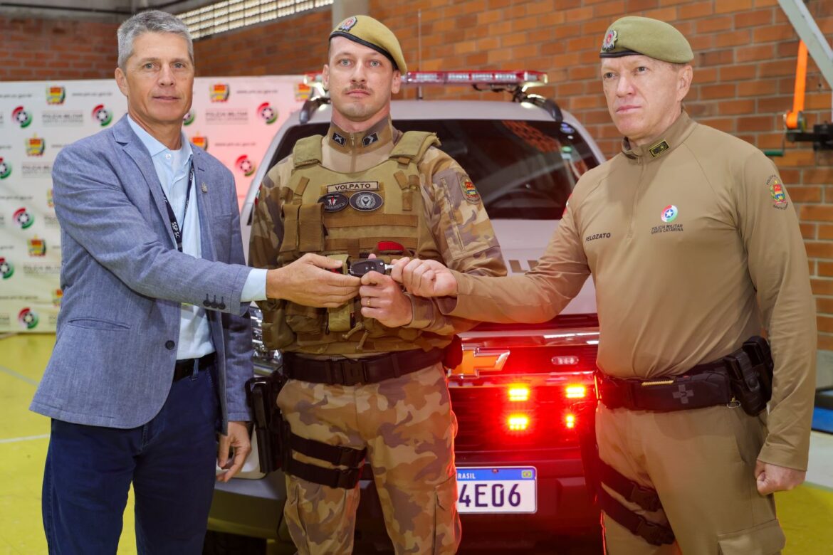 A Polícia Militar de Santa Catarina (PMSC) recebeu 72 viaturas táticas com blindagem tipo escudo. A solenidade de entrega foi realizada nesta quinta-feira, 10, na Academia de Polícia Militar da Trindade, em Florianópolis. A solenidade contou com a presença do secretário da Segurança Pública de Santa Catarina Flávio Rogério Pereira Graff e do comandante-geral da PMSC, coronel Aurélio José Pelozato da Rosa.