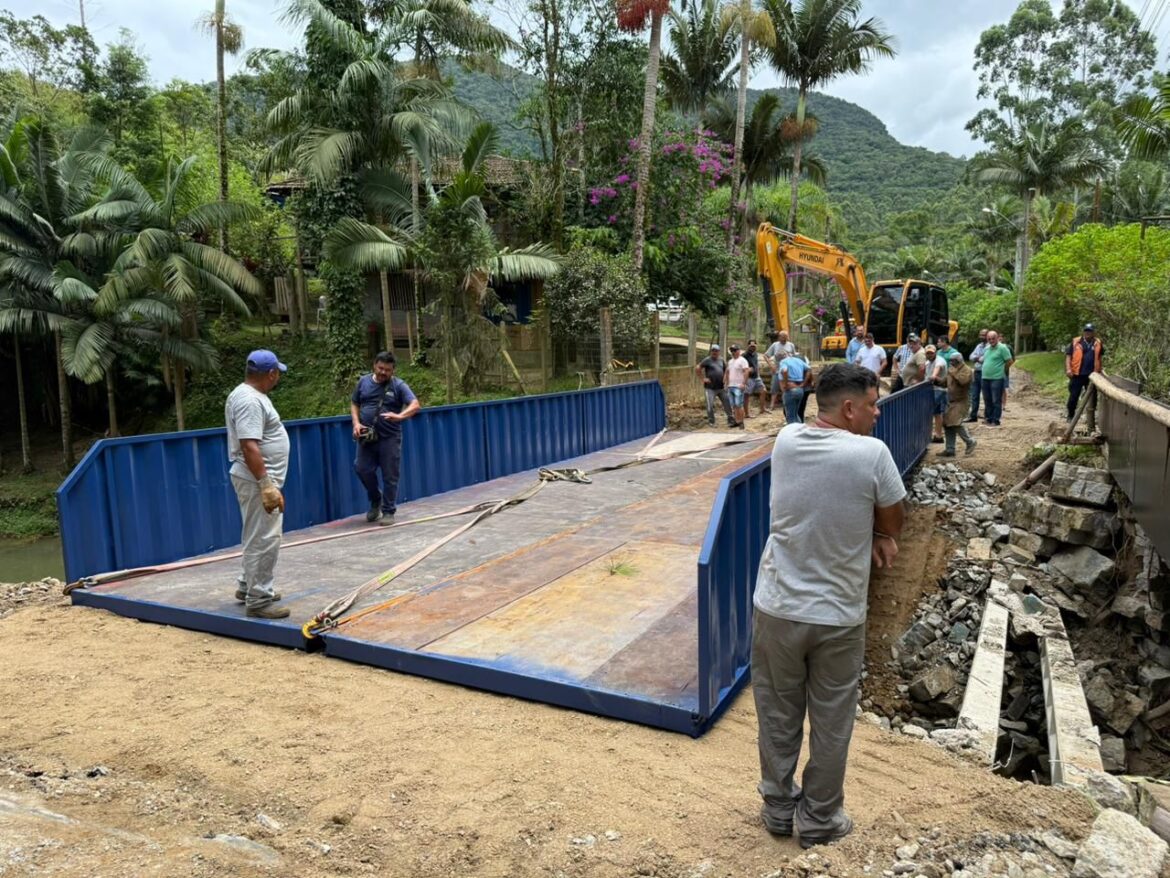 A Prefeitura de Itapema liberou o tráfego de veículos na Ponte do Areal, que liga Itapema a Camboriú, após a instalação de uma estrutura provisória. Feita com placas de contêiner e equipada com guarda-corpo, a passagem foi reforçada para garantir a segurança dos usuários. O tráfego está permitido para veículos de até 8 toneladas, mas caminhões mais pesados ainda não podem utilizar a via.