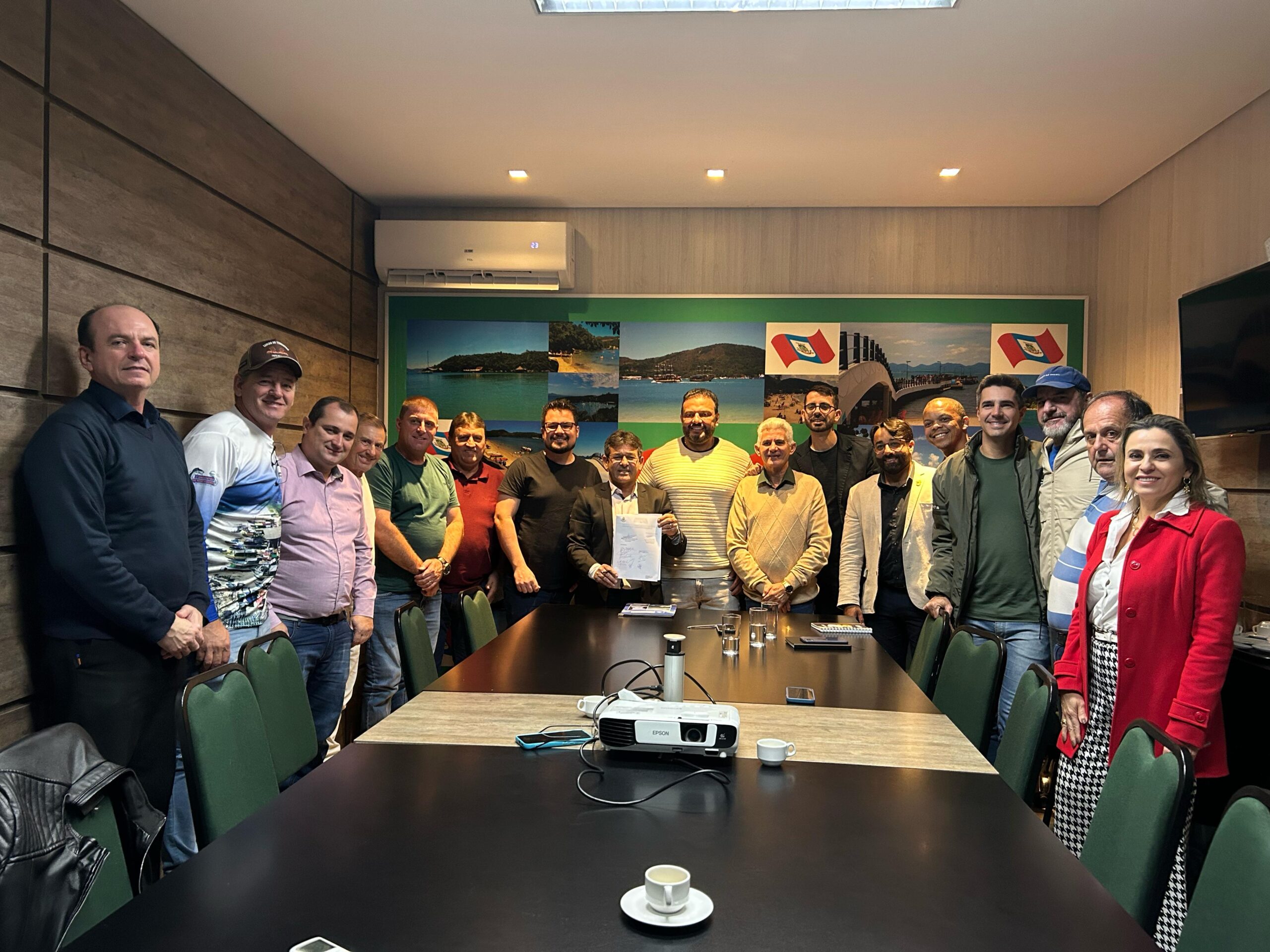 A cerimônia de assinatura contou com a presença do prefeito Joel Lucinda, do vice-prefeito Ailto Neckel, vereadores, secretários municipais e representantes da empresa responsável pela obra.