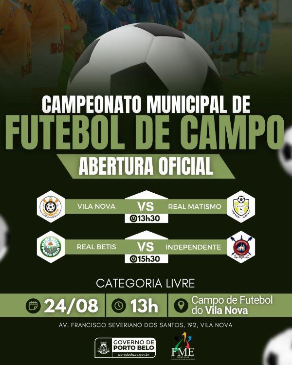 O futebol volta a ser destaque em Porto Belo a partir deste domingo (24), com a abertura oficial do Campeonato Municipal de Futebol de Campo 2025, organizado pela Fundação Municipal de Esportes (FME).