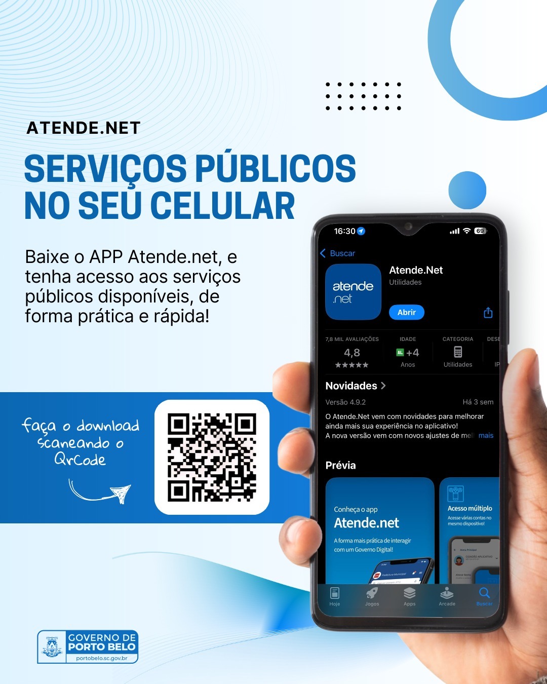 O Governo de Porto Belo está divulgando o aplicativo Atende.Net como uma ferramenta prática para facilitar o dia a dia dos moradores do Município. Por meio do aplicativo, é possível acessar diversos serviços públicos diretamente pelo celular, como a emissão de carnê IPTU, consulta de débitos, acesso à Ouvidoria, acompanhamento de processos digitais e solicitações, emissão de NFS-e, bem como o acesso a outras informações e serviços úteis.
