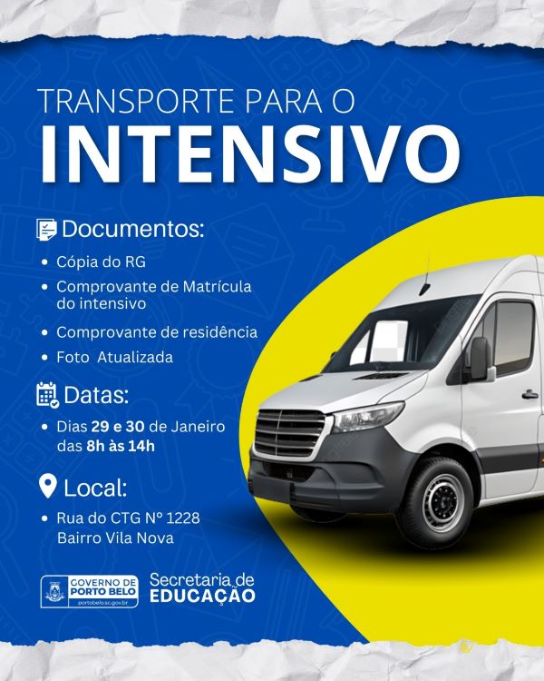 O Governo de Porto Belo, por meio da Secretaria Municipal de Educação, anunciou que irá disponibilizar transporte gratuito para estudantes matriculados no Intensivo de Férias. A medida tem como objetivo garantir o deslocamento dos alunos até as atividades, ampliando o acesso e a permanência no programa.