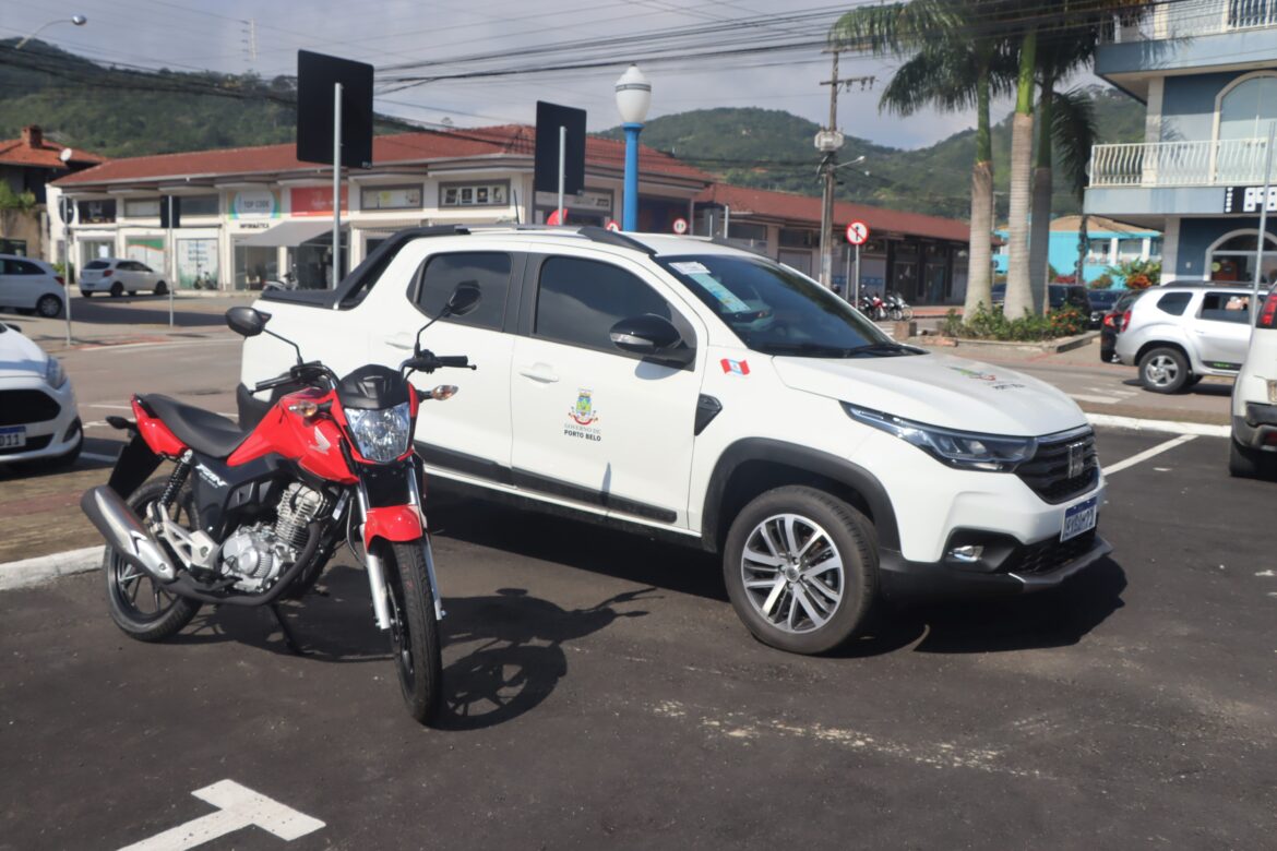 O Município de Porto Belo reforçou sua frota nesta segunda-feira (6) com a entrega de veículos novos à Secretaria de Saúde. Uma Strada 0km cabine dupla foi entregue à Vigilância Sanitária para fiscalizações e transporte de materiais de obra. Na oportunidade, foi entregue uma motocicleta Honda 0km para auxiliar na manutenção da Secretaria de Saúde, garantindo um deslocamento mais ágil.