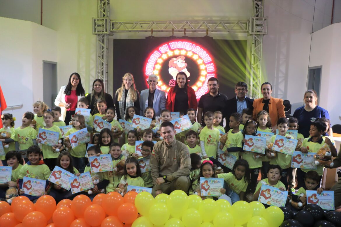 Na última sexta-feira (17), mais de 300 alunos da Educação Infantil da Rede Municipal de Ensino de Porto Belo estiveram reunidos para a primeira formatura do Programa Educacional de Resistência às Drogas e à Violência – Proerd Kids. A cerimônia, realizada no Palco das Artes, encerrou um ciclo importante e pioneiro para as crianças, que agora começam a aprender sobre a prevenção às drogas ainda mais cedo.