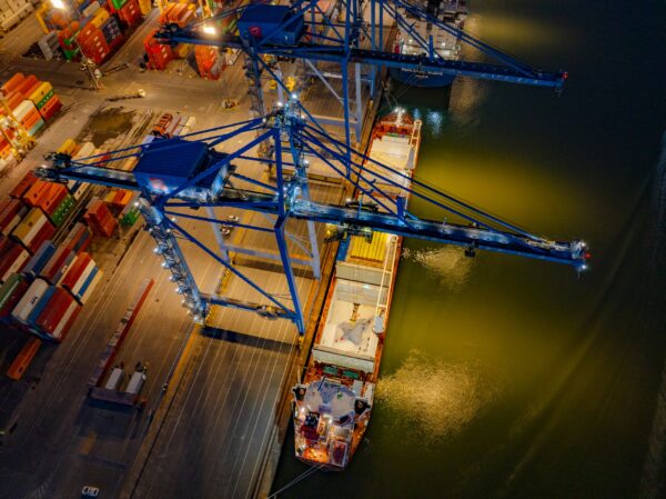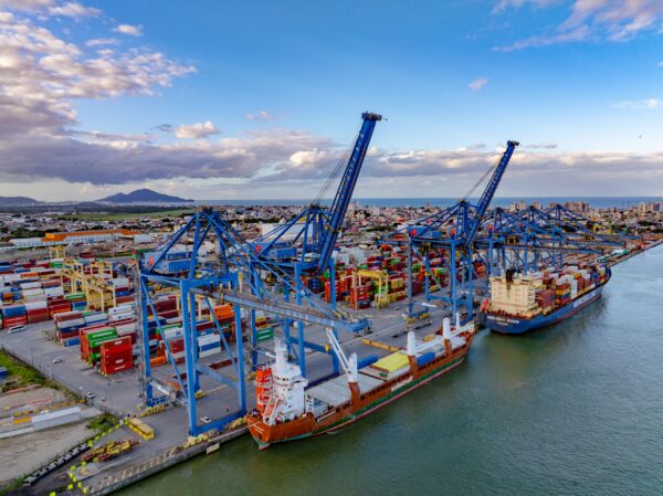 A operação foi realizada de modo eficiente pela equipe da Portonave, com duração de cerca de 1h30. Outro aspecto crucial é a segurança portuária. A Companhia possui a certificação ISPS Code, conjunto de normas que atestam a segurança do recinto alfandegado, emitida pela Comissão Nacional de Segurança Pública nos Portos, Terminais e Vias Navegáveis (Conportos), e dispõe de infraestrutura e procedimentos rigorosos para as operações: conta com aproximadamente 400 câmeras de vigilância – com recursos de visão noturna, detecção de movimento e zoom de até 60 vezes – além de drones e viaturas para resposta rápida. Para a vistoria de contêineres, possui dois scanners, capazes de inspecionar cerca de 1 mil contêineres por dia. Em abril, dois novos e modernos scanners foram adquiridos, com operações previstas para iniciarem até julho.