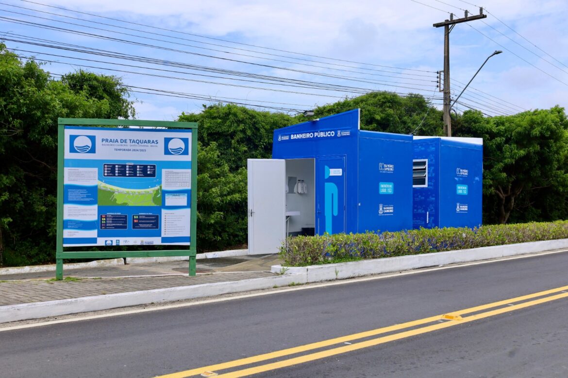 Os banheiros públicos nas praias reconhecidas com a Bandeira Azul estão liberados para uso. Montados em contêineres, os módulos sanitários são duplos (feminino e masculino), com uma das cabines destinadas a pessoas com deficiência.