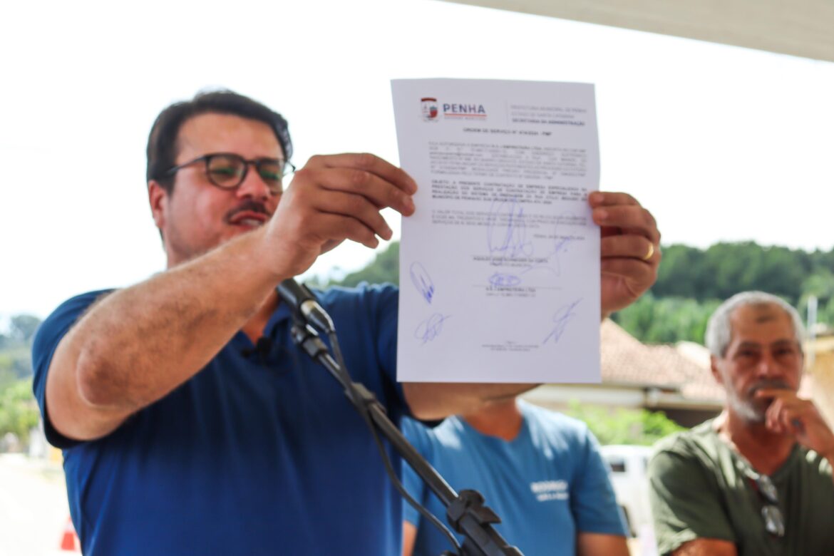 O bairro Nossa Senhora de Fátima receberá em breve mais uma obra de pavimentação. No ato de entrega oficial das obras de infraestrutura no Bairro, o Prefeito de Penha, Aquiles da Costa, assinou a ordem de serviço da Rua Otilio Beduschi, com a presença de moradores da localidade.