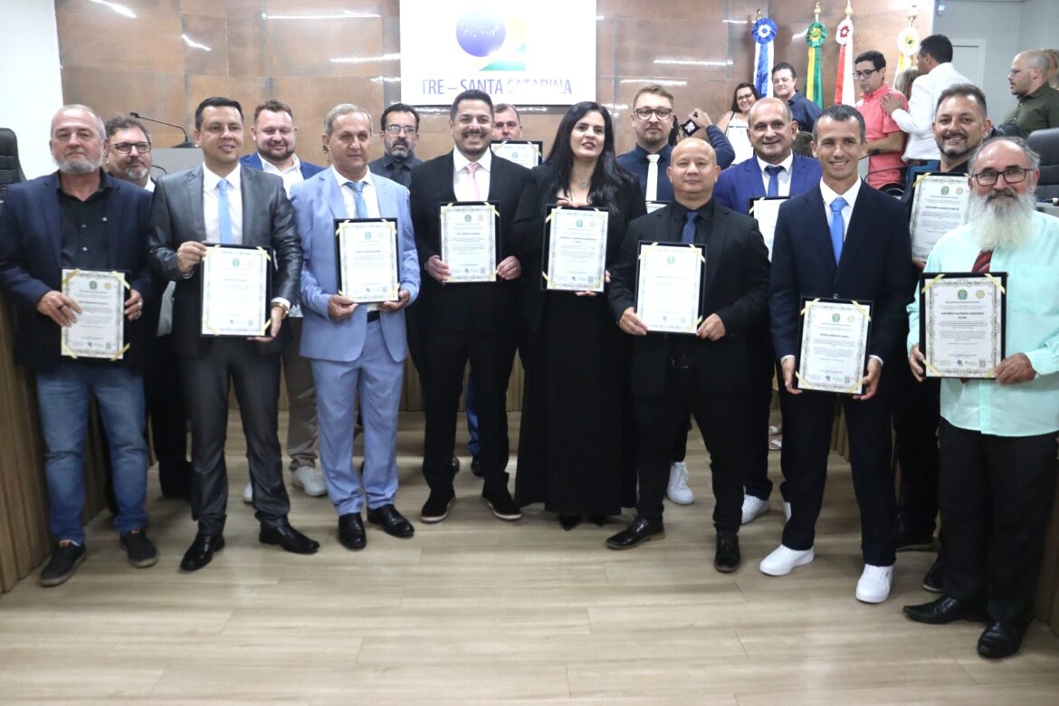 No dia 1º de janeiro de 2025, às 17 horas, serão empossados na sede da Câmara de Vereadores de Penha o prefeito eleito Luiz Américo Pereira (PL), o vice-prefeito Mário Moser (PL), o Marquett, além dos 13 vereadores que conquistaram uma cadeira no Parlamento Municipal nas eleições de outubro.