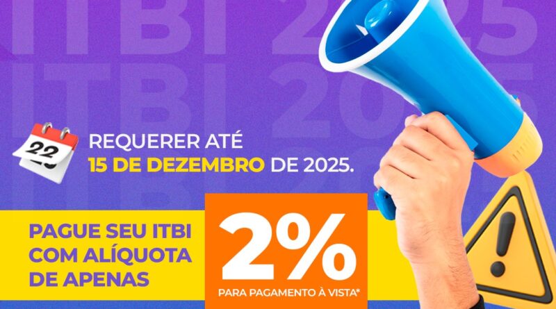 A partir desta quarta-feira, 1º de outubro, a Prefeitura de Bombinhas inicia uma oportunidade especial para quem deseja regularizar a propriedade do seu imóvel. Os contribuintes podem requerer a redução da alíquota do Imposto sobre Transmissão de Bens Imóveis (ITBI) para 2% no pagamento à vista até o dia 15 de dezembro de 2025, facilitando a formalização e garantindo maior segurança jurídica aos proprietários.