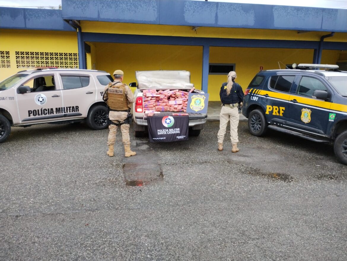 Policiais rodoviários federais e policiais militares apreenderam, no último sábado (23), 290 quilos de maconha em caminhonete roubada em Joinville.