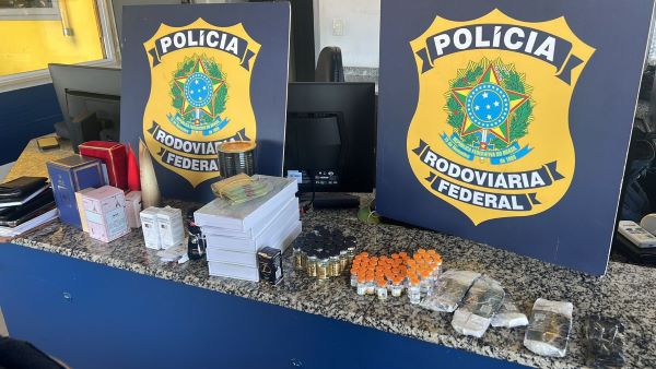 Durante a vistoria, os agentes encontraram uma sacola térmica com remédios para emagrecimento. O homem alegou que os produtos eram para uso próprio, mas demonstrou nervosismo e tentava voltar para o carro a todo momento, o que levantou a suspeita dos policiais.