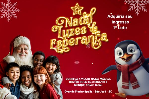 Sobre o Natal Luzes da Esperança: O Natal Luzes da Esperança é um evento temático natalino que estreia em Santa Catarina com a ambição de se consolidar como um inovador evento de Natal do estado. Com infraestrutura diferenciada, atrações exclusivas e uma proposta imersiva para todas as idades, o evento nasce para resgatar a magia natalina e posicionar Santa Catarina como destino obrigatório nas celebrações de fim de ano. A primeira edição acontece em São José, na Grande Florianópolis, ao lado da Prefeitura Municipal, de 20 de novembro a 24 de dezembro de 2025.