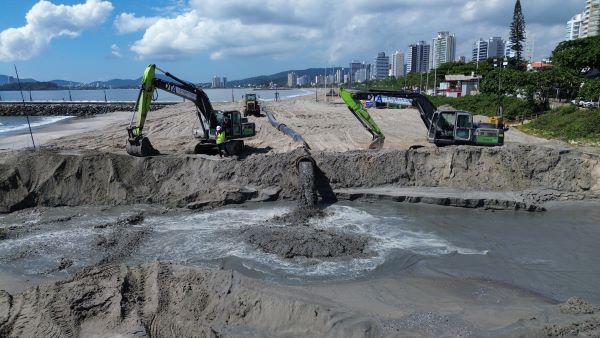 A megaobra de alargamento da faixa de areia da Praia Central de Balneário Piçarras segue em ritmo acelerado e já alcança 97,09% de conclusão na primeira fase do projeto, no trecho compreendido entre a Avenida Getúlio Vargas e o molhe da Barra do Rio Piçarras. No novo trecho, que contempla a readequação do projeto com a ampliação de aproximadamente 430 metros no sentido norte, cerca de 180 metros já foram executados, evidenciando o avanço contínuo da obra e a ampliação da intervenção ao longo da orla.
