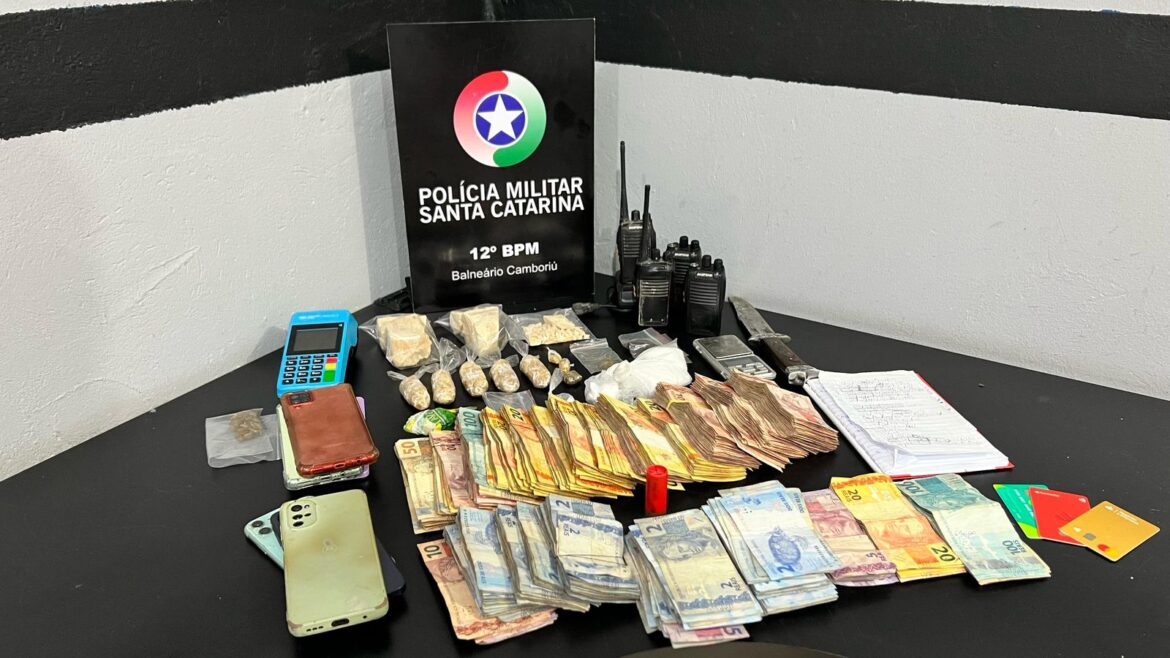 A ação da Polícia Militar ocorreu na cidade de Camboriú e, além da prisão e desmantelamento de parte da organização criminosa, foram apreendidas quantias de crack, cocaína, haxixe, dinheiro e rádios comunicadores utilizados para monitorar a movimentação das viaturas da Polícia Militar.
