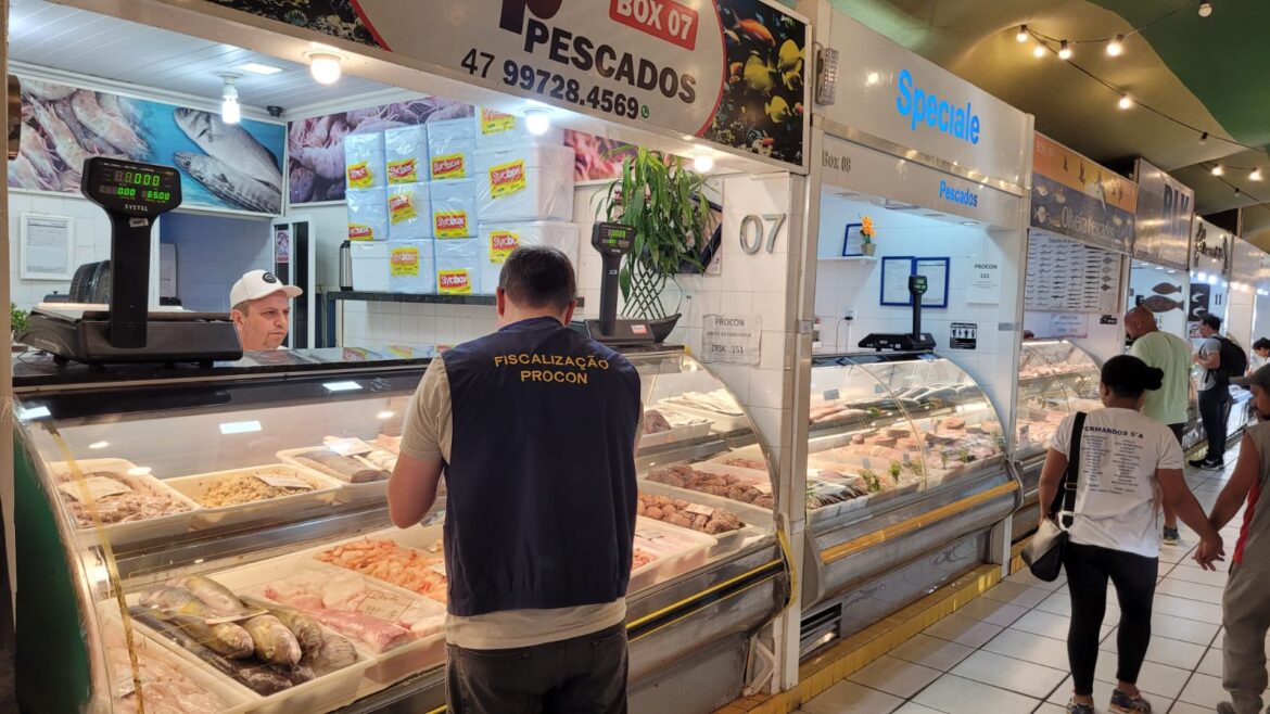 A Procuradoria de Defesa do Consumidor de Itajaí (Procon) realizou, nesta segunda-feira (25), a pesquisa de preço dos pescados para a Semana Santa. Em comparação ao ano anterior, houve um aumento de 2% no somatório médio dos valores praticados. O levantamento foi realizado por fiscais do órgão no Centro de Abastecimento Paulo Bauer – Mercado do Peixe do Centro.
