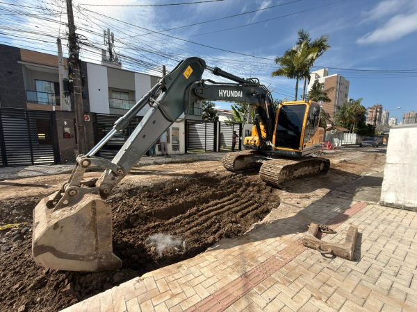 No bairro Morretes, as equipes atuam na execução de drenagem pluvial nas ruas 444 e 438, ampliando a capacidade de escoamento das águas da chuva e prevenindo alagamentos. Já na Rua 418A, além da drenagem pluvial, também está sendo realizada a construção de calçadas, promovendo mais segurança e acessibilidade para pedestres.