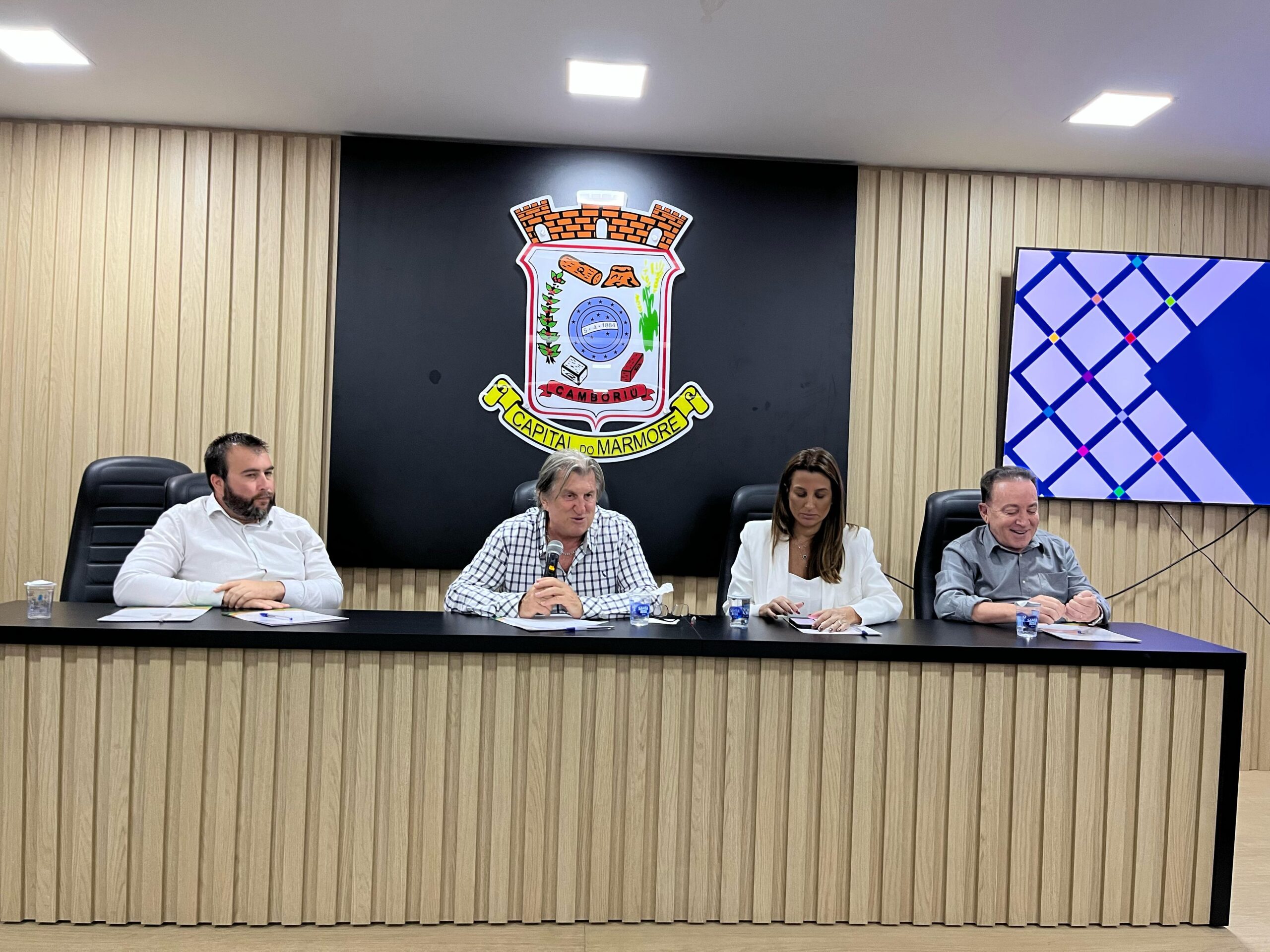 O prefeito de Camboriú, Leonel Pavan, e a prefeita de Balneário Camboriú, Juliana Pavan, acompanharam a apresentação ao lado de representantes da EMASA e do consórcio CIM-AMFRI, demonstrando otimismo com a proposta.