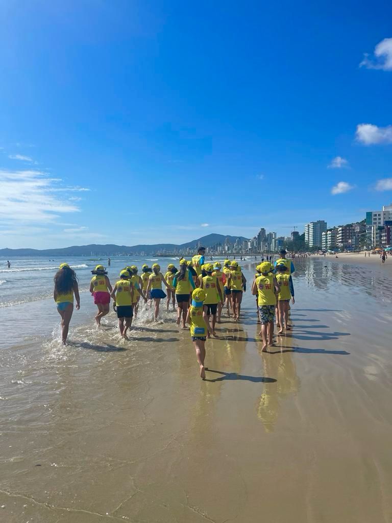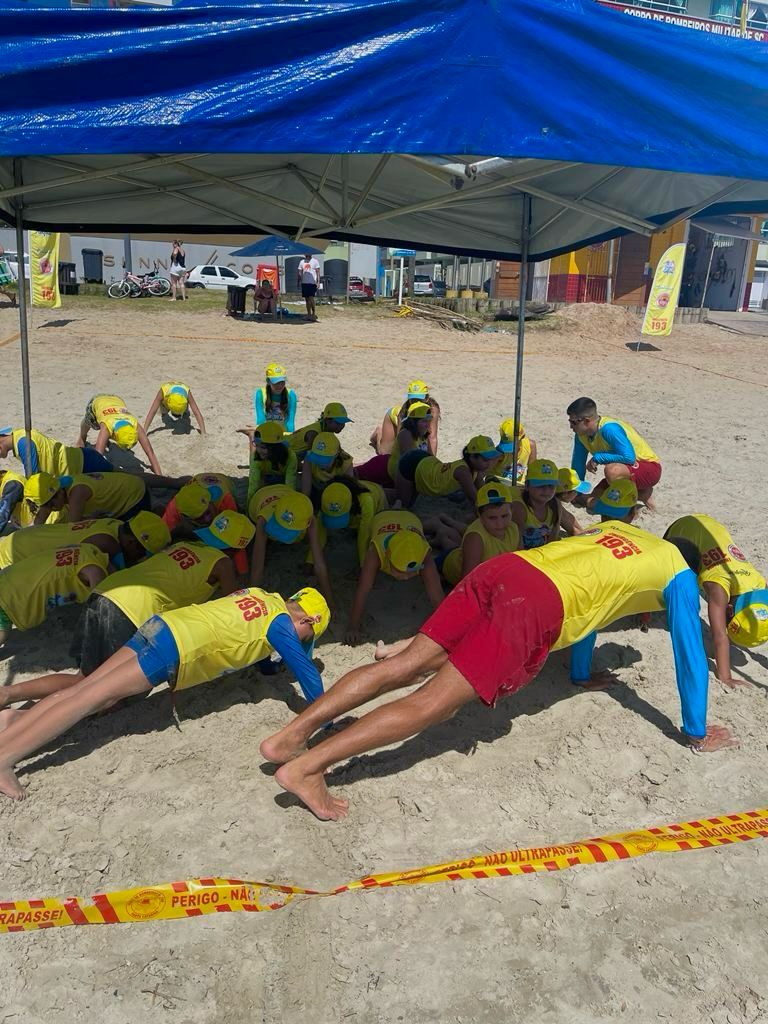 O Corpo de Bombeiros Militar de Itapema iniciou nesta quarta-feira (10/01) a primeira turma do Projeto Golfinho desta temporada de 2024, com aproximadamente 30 crianças, na Orla do Centro.
