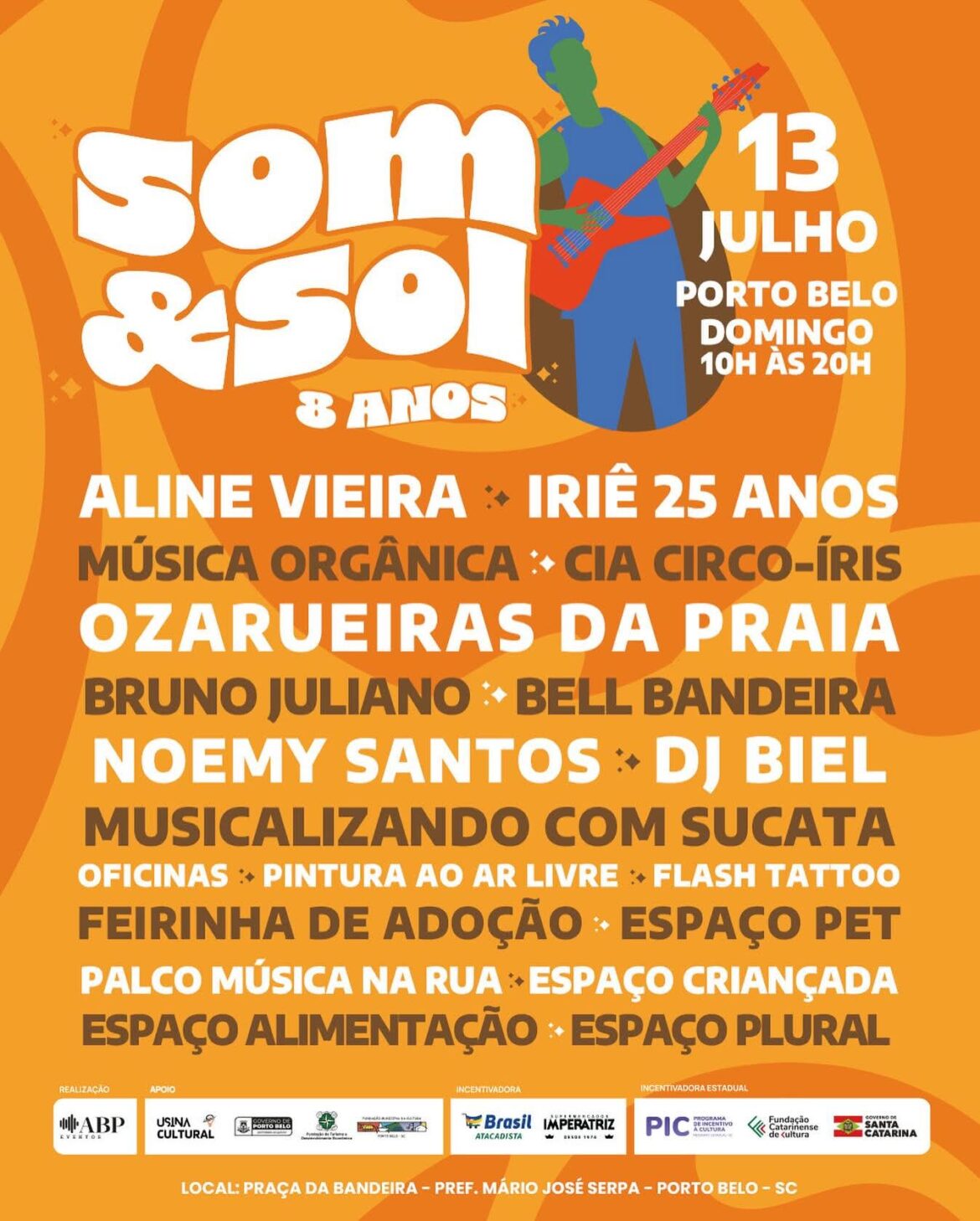 Neste mês de junho o Som&Sol alcança um grande marco em sua história. Promovendo a cultura e a economia criativa, o projeto chega a oito anos de atividades e prepara uma série de comemorações que prometem muita arte para o público de várias cidades. Serão oito edições especiais nos próximos meses, com nova estrutura e ainda mais atrações. A primeira delas é a de número 80 do projeto e ocorre na Praça da Bandeira, em Porto Belo, no domingo (13), das 10h às 20h. O evento, como sempre, é gratuito.