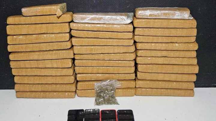 Durante a busca no automóvel, os policiais encontraram uma sacola plástica com dois tabletes de maconha no assoalho do motorista e, na carroceria, um saco de lixo preto com mais 30 tabletes da mesma droga, totalizando 19,4 kg.