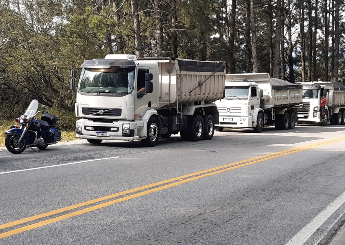 Chamou a atenção dos agentes que todos os veículos estavam transitando em velocidade extremamente reduzida, prejudicando o fluxo nesta região de serra. Os transportadores foram multados e os motoristas somente seguiram viagem após o transbordo da carga excedente de pedras para outros veículos.