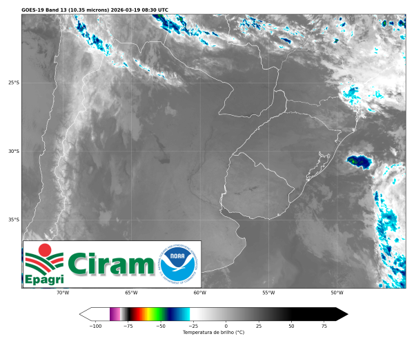 Nesta quinta-feira (19), o Litoral e áreas próximas permanecem com céu encoberto e condições para chuva a qualquer momento. Durante a tarde, há possibilidade de temporais isolados, influenciados pela circulação marítima combinada ao calor e a um sistema de baixa pressão. Já no Grande Oeste e nos planaltos, a chuva ocorre de forma mais isolada e restrita ao período da tarde. O risco para ocorrências como alagamentos pontuais e destelhamentos é considerado baixo a moderado. As temperaturas chegam a 35°C no Oeste, enquanto variam entre 25°C e 28°C nas regiões litorâneas.
