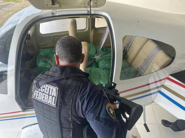 No momento da abordagem, um veículo VW/Taos estava estacionado em frente ao hangar. O motorista, de 34 anos e morador de Foz do Iguaçu, auxiliava o piloto a empurrar a aeronave para dentro do galpão.