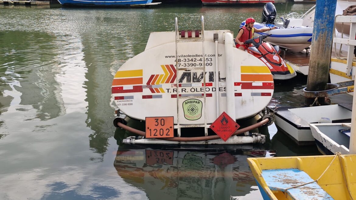 Guarnições do AR-122, ABTR-122, ASU-291 e GMAU foram acionadas para atender ocorrência envolvendo caminhão-tanque de transporte de combustível (diesel), com vítima presa no interior da cabine. No local, a situação evoluiu pois o caminhão estava submerso no Rio Camboriú. Segundo relatos de testemunhas presentes, o caminhão-tanque, carregado de óleo diesel (painel de segurança 30/1202), acessou a rampa de acesso ao rio para realizar o abastecimento de uma embarcação atracada no píer.