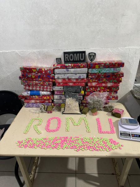 Com a indicação do endereço onde estaria o restante da droga, a ROMU se deslocou até a residência apontada pelo suspeito e realizou buscas no imóvel. No local, foram encontrados aproximadamente 23 kg de maconha, 1 kg de substância análoga à MDMA, cerca de 700 comprimidos semelhantes a ecstasy, 320 papelotes de LSD, além de balanças de precisão, materiais para fracionamento e um caderno com registros típicos da atividade de tráfico.