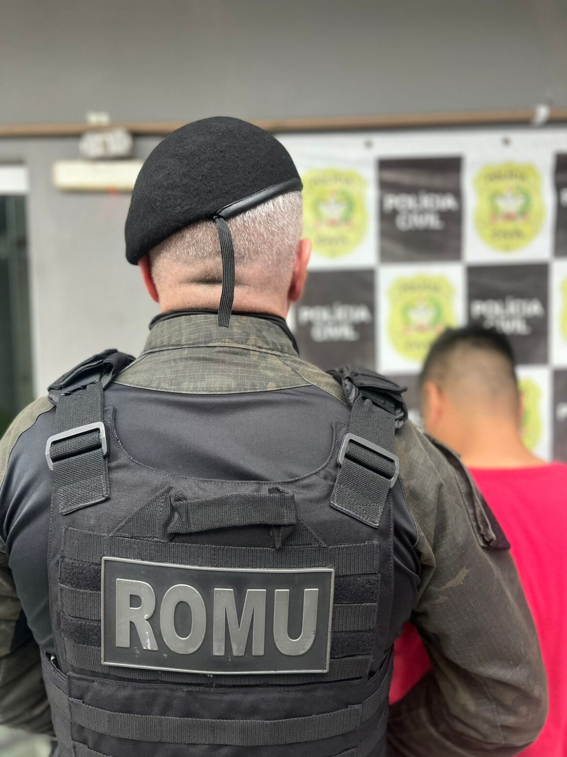 Diante dos fatos, a guarnição prestou atendimento à vítima, que demonstrou interesse em representar formalmente contra o autor. O suspeito foi abordado e informado de seus direitos, colaborando com os procedimentos da equipe, sem necessidade do uso de algemas.