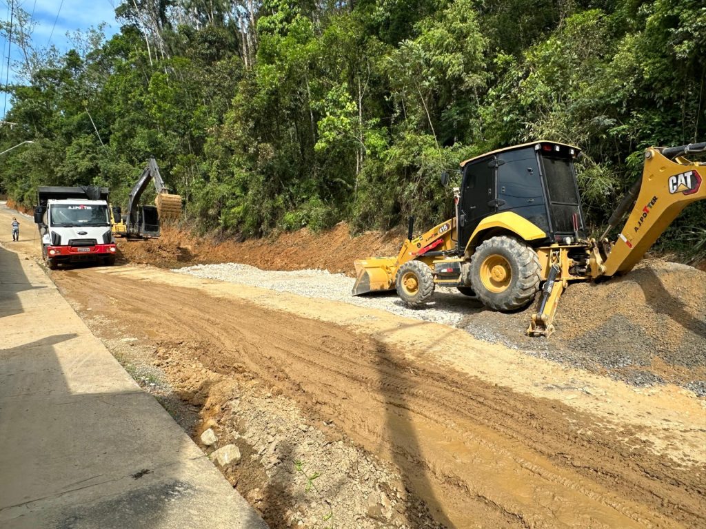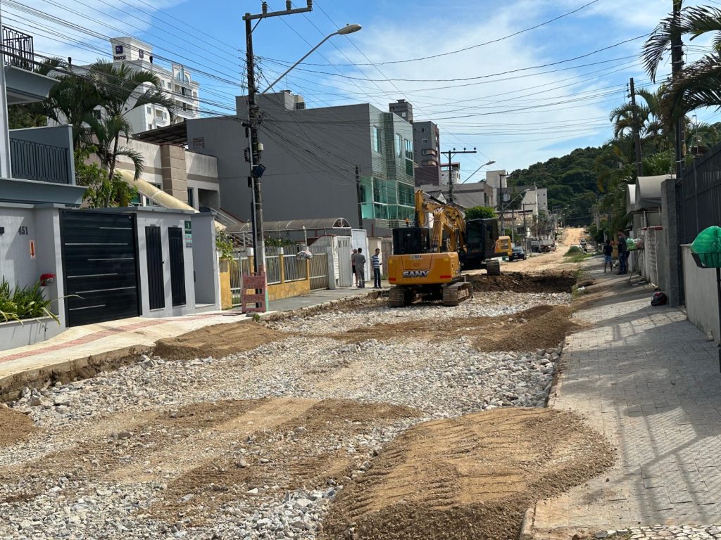 O último trecho da Rua Santa Cecília está em fase de execução, com o preparo da base com pedra rachão, para receber a pavimentação asfáltica. A obra tem ao todo 1,8km, com área total de 14.328 m², que vai desde o fim da parte pavimentada com lajotas até a divisa com o município de Itajaí.