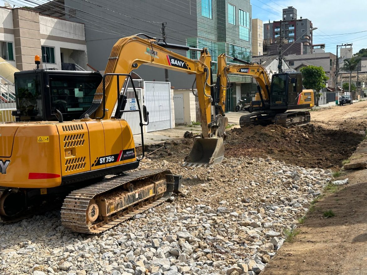 O último trecho da Rua Santa Cecília está em fase de execução, com o preparo da base com pedra rachão, para receber a pavimentação asfáltica. A obra tem ao todo 1,8km, com área total de 14.328 m², que vai desde o fim da parte pavimentada com lajotas até a divisa com o município de Itajaí.