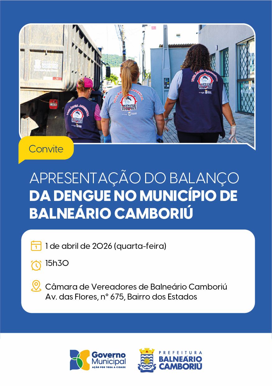Os resultados do trabalho realizado pelas equipes da Vigilância Ambiental de Balneário Camboriú em relação ao combate à dengue serão apresentados para a comunidade a partir das 15h30 desta quarta-feira (1), na Câmara de Vereadores – Avenida Dona Amélia Cherem Pio, nº 675, Bairro dos Estados.
