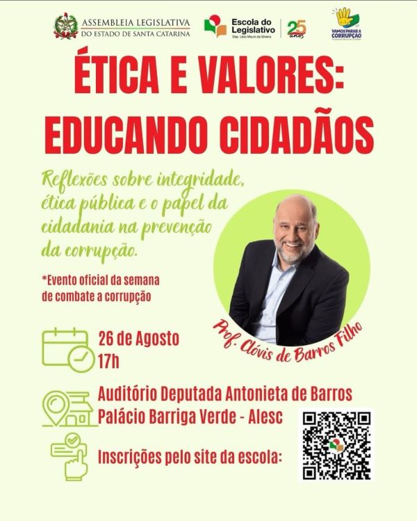 Em parceria com o Ministério Público de Santa Catarina (MPSC), a Assembleia Legislativa do Estado de Santa Catarina (Alesc) realiza, no Auditório Antonieta de Barros, sede do Legislativo estadual, a edição 2025 da Semana de Combate à Corrupção, entre segunda-feira (25) e quinta-feira (28).