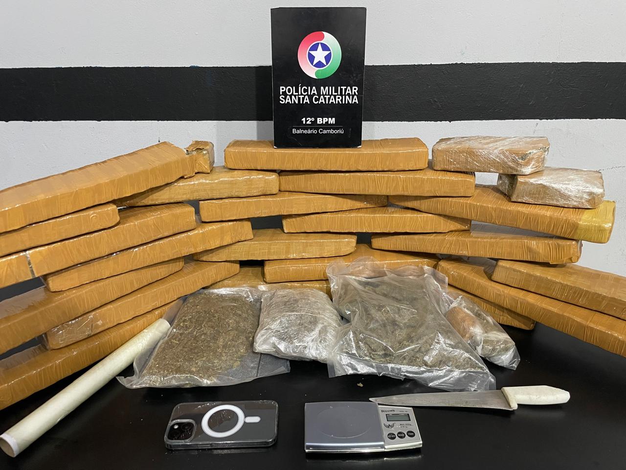 Já na casa da sua genitora, na Rua Luiz Bela Cruz, também em Itajaí, foram encontrados mais 14,8 quilos de maconha armazenados em uma mala.