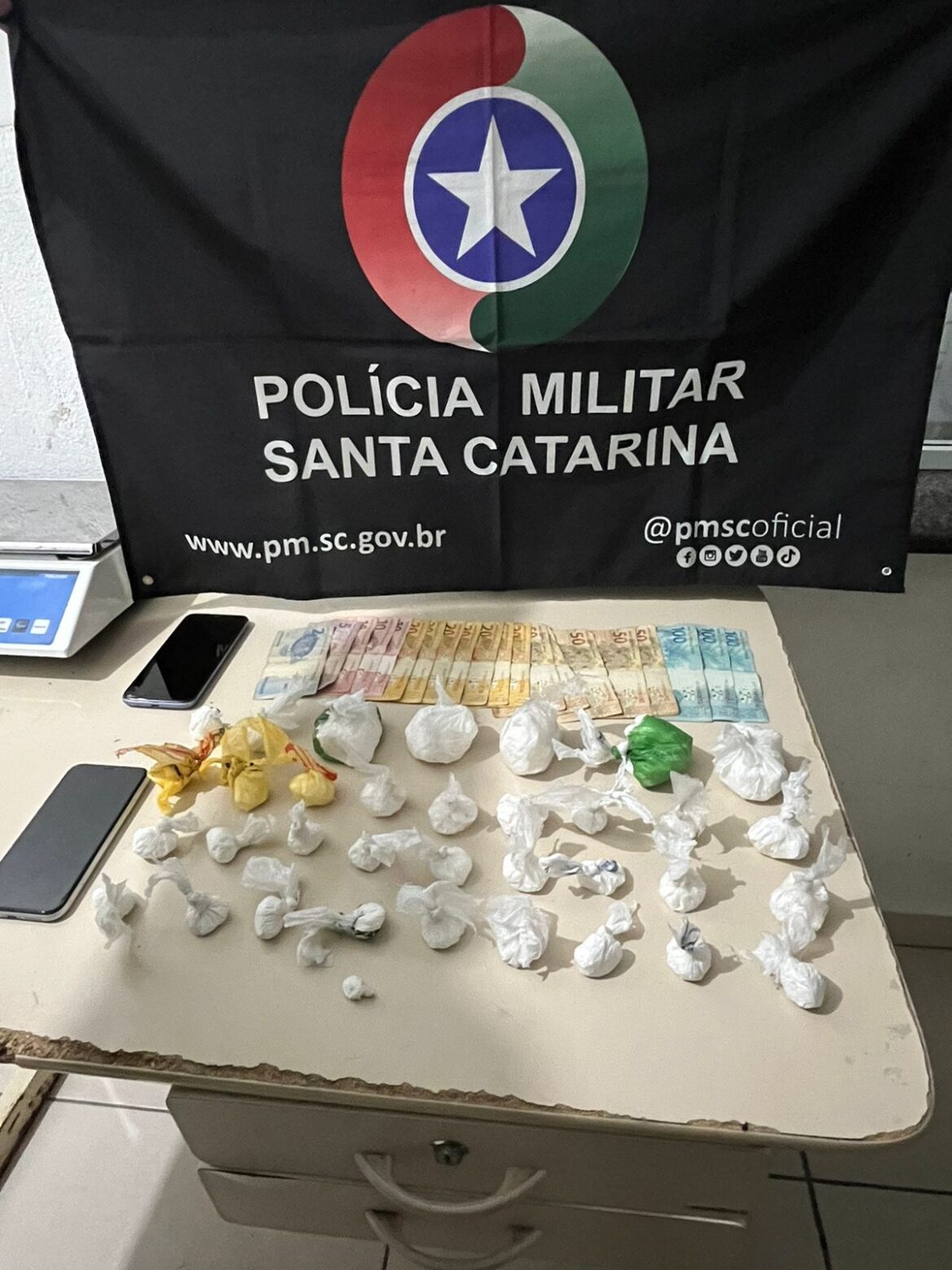 Cabe ressaltar que, na tela principal do celular de um dos autores, apareciam várias mensagens sobre transações bancárias típicas de movimentações do tráfico de entorpecentes. Diante dos fatos, foi lavrado o presente Boletim de Ocorrência Policial (BOPA) e encaminhados os envolvidos e testemunhas à delegacia de Polícia de Itapema.