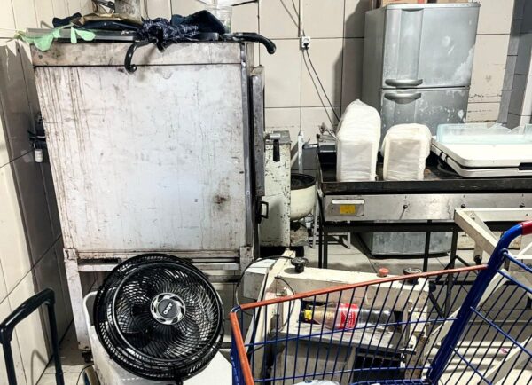 Durante a inspeção, os agentes da vigilância constaram graves irregularidades, como falta de infraestrutura mínima, presença de trabalhadores vivendo dentro das áreas de manipulação dos alimentos, alimentos armazenados de forma imprópria, utensílios sujos, ambiente insalubre e ausência de equipamentos de proteção individual. Todos os produtos foram apreendidos e inutilizados e o local foi interditado.