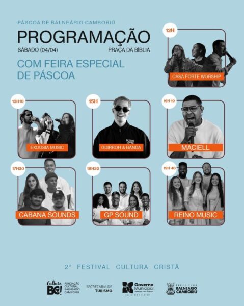 Balneário Camboriú preparou uma programação extensa com eventos culturais, religiosos e temáticos a fim de movimentar a cidade durante as celebrações de Páscoa. As ações acontecem até 15 de abril. O objetivo é ampliar a oferta de atrativos turísticos e fortalecer o calendário de eventos do município fora da alta temporada de verão.
